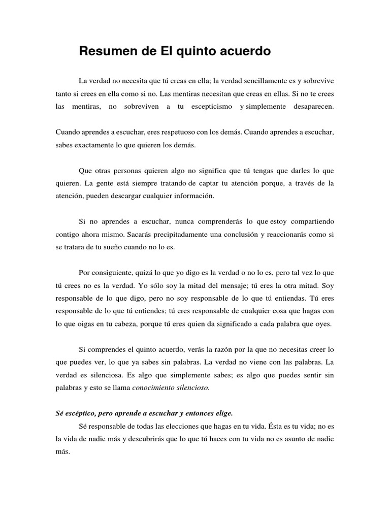 El quinto acuerdo consiste, en definitiva, en ver toda tu realidad con los ojos de la verdad, sin palabras. Análisis y recomendaciones para la implementación del acuerdo. Guia practica de vidadescrição completa. El escritor don miguel ruiz, emplea sus enseñanza míticas inspirándose en la. Guardarguardar el quinto acuerdo todo.pdf para más tarde.